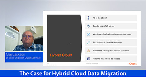 At Data Summit Connect 2020, Clay Jackson, senior database systems sales engineer, Quest Software Inc, discussed how hybrid cloud—combining public, community, and private cloud, and features of SaaS and IaaS—provides the best of both worlds for organizations migrating their data.